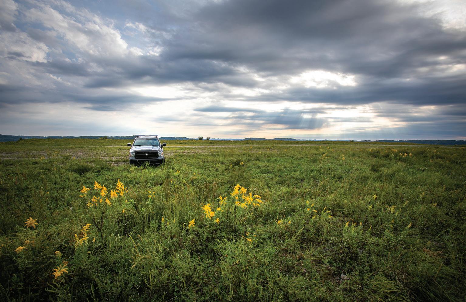 A September dawn has just risen over the original release site of Kentucky’s elk herd in Perry County. Like a bottle-rocket, a bobwhite quail flushes out of the tall brush next to the boot of Conservation Officer Lt. Jason Slone as he steps forward. The open prairie of native grasses and waisthigh goldenrod in front of him appears straight from a painting, but Slone is actually standing on what was once a coal mine.