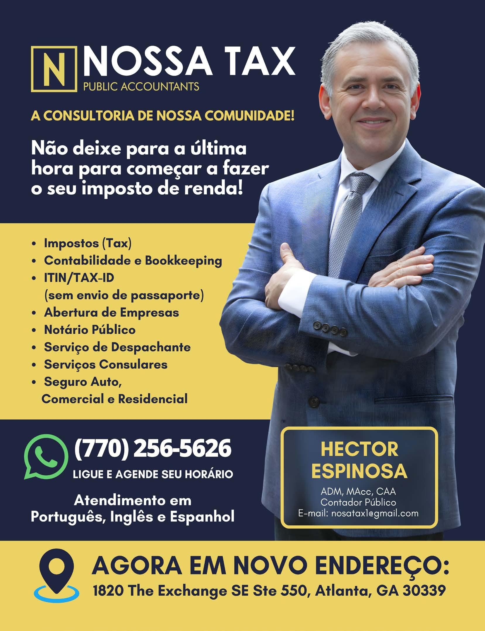 NOSA TAX | PUBLIC ACCOUNTANT - C.P. Hector Espinosa • Falamos Português. Não deixe para a Ultima hora para começar a fazer o seu imposto de renda! 1900 The Exchange SE Ste 430, Atlanta, GA 30339 .................... (770) 256-5626