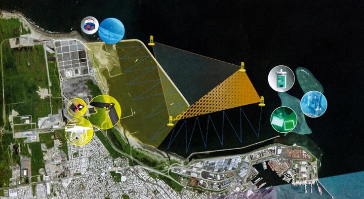 • Dragado de 12 millones de metros cúbicos para dársenas, canal de navegación de 330 m de plantilla, 18 m de profundidad y rellenos
