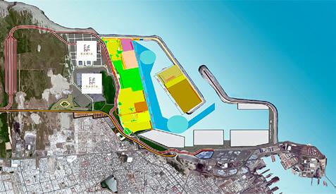 En la zona rellenada se establecerán cinco terminales: de fluidos, semiespecializada de carga suelta y contenerizada, la de contenedores citada, una de granel agrícola y otra de granel mineral (véase figura 5).