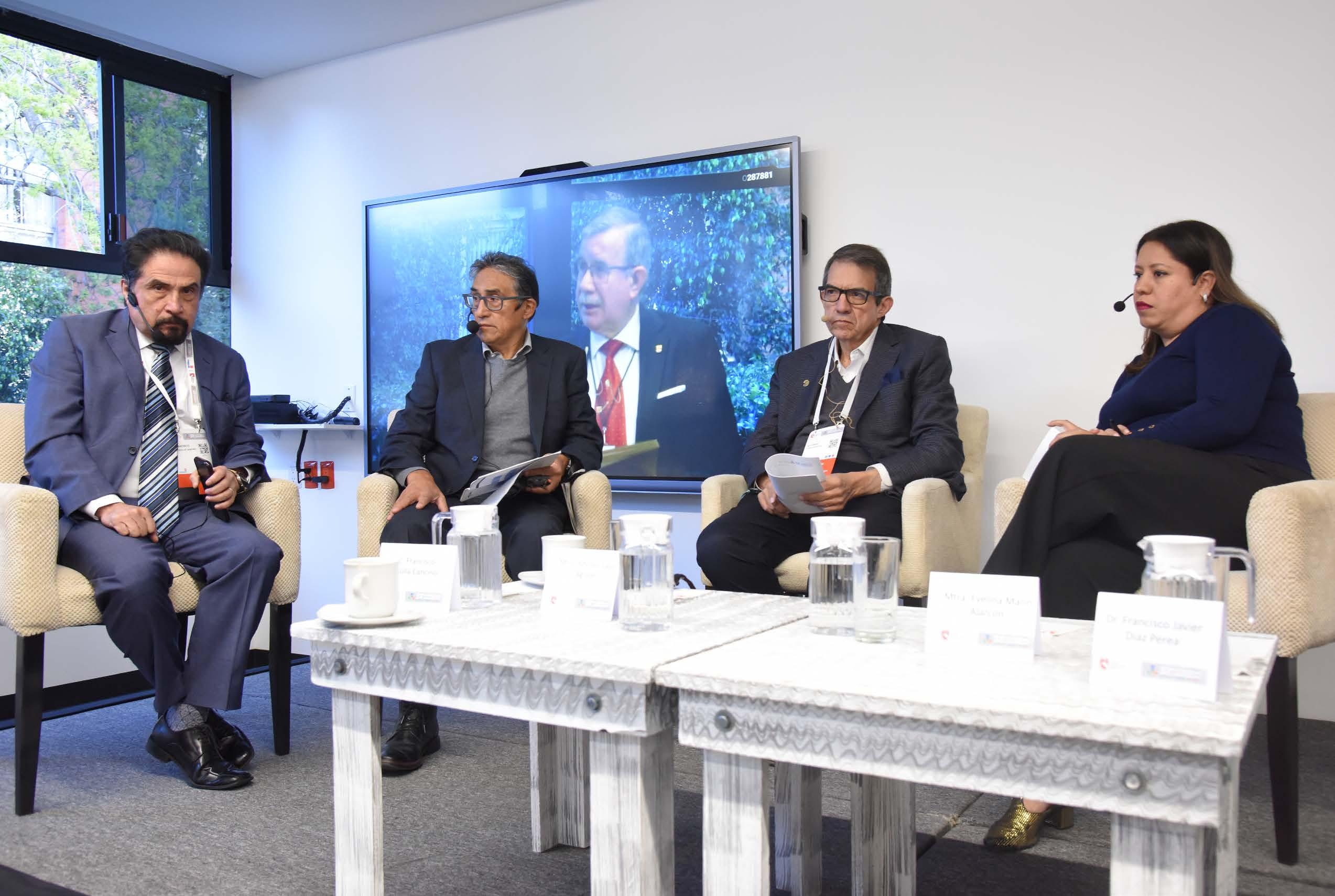 El ING. ÓSCAR CORTÉS REYNA , Vicepresidente de Asuntos Internacionales de la FEMCIC; DR. LUIS ANTONIO BOJÓRQUEZ TAPIA , Investigador del Laboratorio Nacional de Ciencias de la Sostenibilidad (LANCIS) y la ING. CRISTINA CONTRERAS CASADO, Fundadora y CEO de Sinfranova LLC. Como moderador participó el DR. JUAN CARLOS TEJEDA GONZÁLEZ, Coordinador del Comité de Medio Ambiente y Sustentabilidad del CICM.