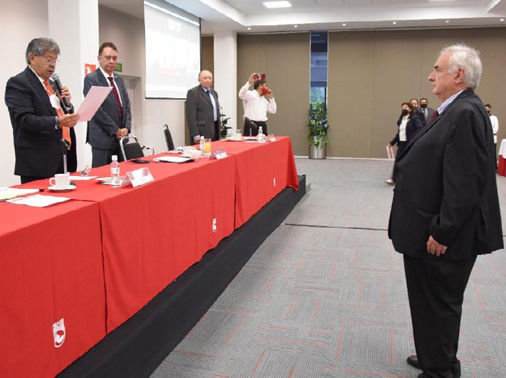 El ING. VÍCTOR ORTÍZ ENSÁSTEGUI , Presi dente de la Junta de Honor del CICM, antes de tomar protesta al Mtro. Jorge Serra Moreno, re cordó que debido a un problema de salud por el Covid-19, el Mtro. Serra no pudo tomar protesta en su momento, por lo que el Consejo Directivo, en la Asamblea General Ordinaria del 24 de marzo, nombró al Dr. Felipe I. Arreguín Cortés como Primer Vicepresidente para hacerse cargo de la Presiden cia del Colegio en tanto se recuperaba el Ing. Jorge Serra. “Recibimos la indicación de tomar protesta a Jorge Serra una vez que se encontrara en buenas condiciones de salud y que pudiera reincorporarse a sus actividades en el Consejo”.
