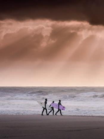De zee en het strand inspireren ook veel kunstenaars. Sinds fotograaf Jop Hermans tien jaar geleden op Scheveningen neerstreek, is hij een fervent surfer. Ook dook hij in de surffotografie. Met vallen en opstaan maakte hij zich beide disciplines eigen. Op de plank is hij een goede amateur; met de camera blijft hij zich ontwikkelen. Zijn beelden worden steeds kleurrijker en minimalistischer. Hij maakt graag gebruik van de ‘lege ruimte’ waarin de mens het middelpunt vormt. Wij worden alleen maar heel erg blij van zijn beelden, wat een talent!