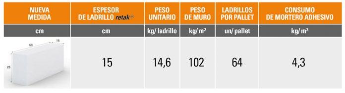 La nueva medida 60 x 25 cm favorece aún más el trabajo en obra. Para muros portantes, ejecuciones más rápidas, mejor rendimiento de materiales, con todas las ventajas de retak®.