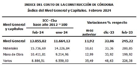 La RED Edificar, cámara empresaria privada, que representa a las 10 principales empresas proveedoras de materiales de construcción en la provincia, dio a conocer su informe. Del mismo se desprende un acumulado del 11,48% durante el primer bimestre del año.