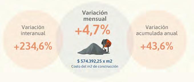 A nivel interanual, se trata de un alza de 234,6%, con una suba en los tres ítems: materiales (0,8%) Mano de obra (11,0%) y gastos generales (2,9%).