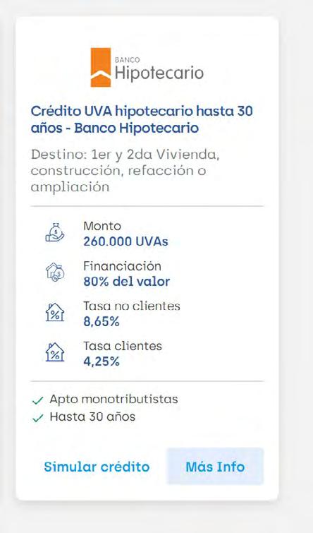 Filtros personalizados: los usuarios pueden filtrar por destino del crédito, plazos, si son aptos para monotributo y si permiten pre cancelación.