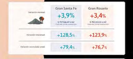 En el aglomerado Gran Santa Fe los aumentos más relevantes se registran en: Pinturas varios, 3,7%; Varios instalación eléctrica, 3,3%; Artefactos gas, 3,3%; Cañerías p.p. agua fría y caliente, 2,9%; Granitos, 2,6%; Revoques finos, 2,0%; Amoblamientos, 2,0%; Pisos y revestimientos, 1,9%; Carpintería de aluminio, 1,8%; Cementos, 1,4%. Por su parte, el aglomerado Gran Rosario se observan alzas en: Artefactos/accesorios sanitarios, 2,5%; Varios cloacal pluvial, 2,6%; Pinturas varios, 2,3%; Grifería, 2,0%; Cementos, 1,8%; Maderas, 1,7%; Pisos y revestimientos, 1,7%; Carpintería de aluminio, 1,6%; Amoblamientos, 1,4%; Pisos y revestimientos, 1,3%. El alza en gastos generales en ambos aglomerados se debió principalmente al grupo Honorarios Profesionales. El capítulo “Mano de obra” incorpora el acuerdo salarial de la Unión Obrera de la Construcción de la República Argentina (UOCRA), aplicable a las categorías laborales previstas en el Convenio Colectivo de Trabajo 76/75, estableciendo un aumento del 4,0% que rige a partir del 1º de noviembre de 2024, aplicable sobre los valores vigentes al 31 de octubre de 2024.