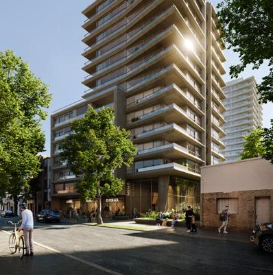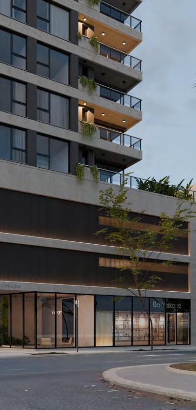 A partir del 3º piso se desarrolla la torre de 13 niveles con una planta tipo de 3 departamentos de 1 y 2 dormitorios por piso, alcanzando un total de 39 viviendas a las cuales se accede a través de dos ascensores de alta velocidad.