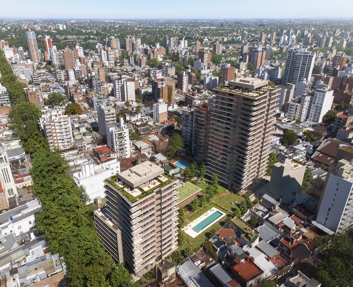 “(...) esta esquina tiene la particularidad que el lote Lindero al este es un PH que se encuentra preservado por la Comisión de Patrimonio, con lo cual ahí es muy difícil que alguna vez se pueda construir algo en altura y los lotes que dan al contrafrente al norte ya pertenecen a otro distrito de zonificación con lo cual arrojan una menor altura de construcción, eso nos permitió trabajar en torre y esto nos asegura no solamente las visuales sino también la mejor ventilación, iluminación natural y aseolamiento.