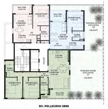 "En este proyecto en particular, el diseño de las plantas son muy compactos donde tenemos afinado y ajustado muy bien cada centímetro. Por ejemplo hasta las terrazas han sido cuidadas. Claro tiene terrazas naturadas en el tercer piso donde se puede aprovechar por las unidades a las que pertenecen pero a su vez bueno se disfruta en el conjunto, el espacio verde y lo que hemos planteado en el diseño.