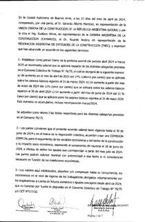 El 12 de enero de 2026, la Unión Obrera de la Construcción de la República Argentina (UOCRA), la Cámara Argentina de la Construcción (CAMARCO) y la Federación Argentina de Entidades de la Construcción (FAEC) llegaron a un acuerdo paritario, el cual fue homologado por la Dirección Nacional de Relaciones y Regulaciones del Trabajo del Ministerio de Capital Humano el 15/01/26, en los siguientes términos: Se establece un incremento salarial que se aplicará a las distintas categorías previstas en el Convenio Colectivo de Trabajo CCT N° 76/75, el cual se otorgará de la siguiente manera: a) Un aumento en el mes de enero de 2026 del 2% (dos por ciento) que se aplicará sobre los salarios básicos vigentes al 31 de diciembre de 2025; b) Un aumento a partir del mes de febrero de 2026 del 1,8% (uno coma ocho por ciento) que se aplicará sobre los salarios básicos vigentes al 31 de enero de 2026. La totalidad de los porcentuales aquí previstos son acumulativos. Asimismo, se establece el pago de una suma mensual, de carácter no remunerativo, pagadera en los meses de enero de 2026 y febrero de 2026 para los trabajadores del mismo Convenio Colectivo, de la siguiente manera: el 50% será abonado juntamente con el pago de la primera quincena del mes del cual se trate y el 50% restante será abonado juntamente con el pago de la segunda quincena de dicho mes. El presente acuerdo salarial tiene vigencia hasta el 28 de febrero de 2026.