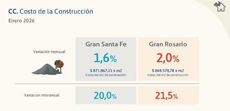 El Instituto Provincial de Estadísticas y Censos (Ipec) dio a conocer el nivel general del costo de la construcción (CC) en el aglomerado Gran Santa Fe correspondiente a enero de 2026.