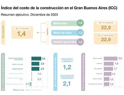 El informe técnico detalló que las variaciones en los precios de los materiales estuvieron asociadas tanto a factores internos del mercado como a la dinámica de contratación y provisión local. Las revisiones salariales y los aumentos tarifarios definieron el comportamiento de los costos durante diciembre y determinaron el cierre anual del indicador.