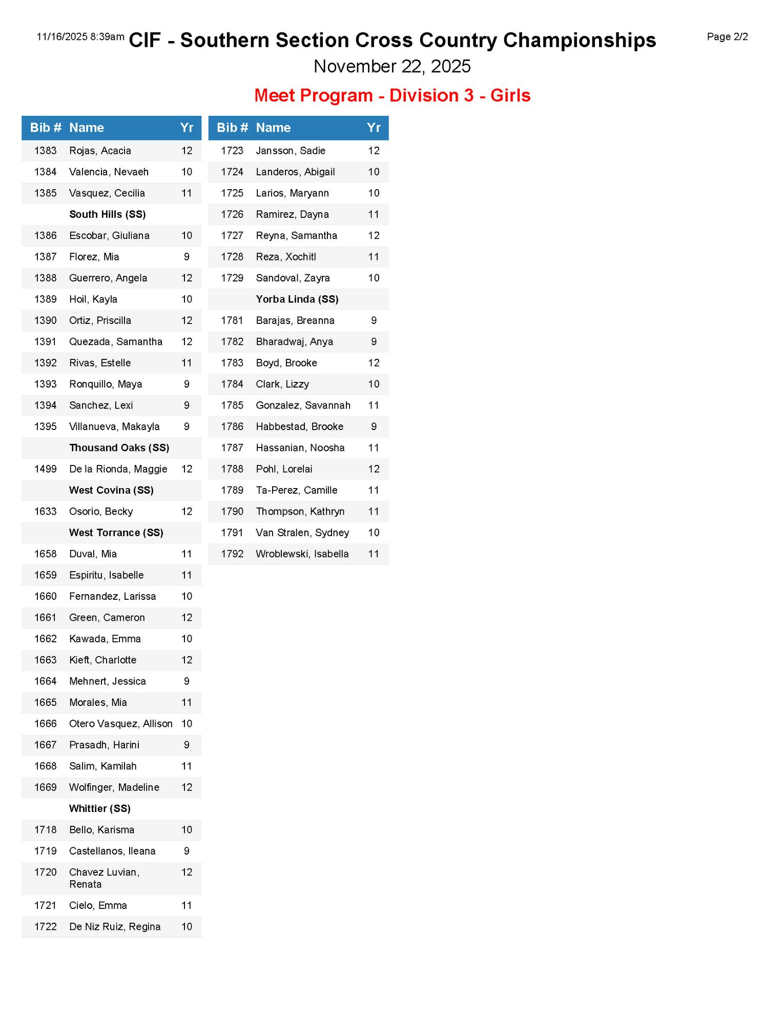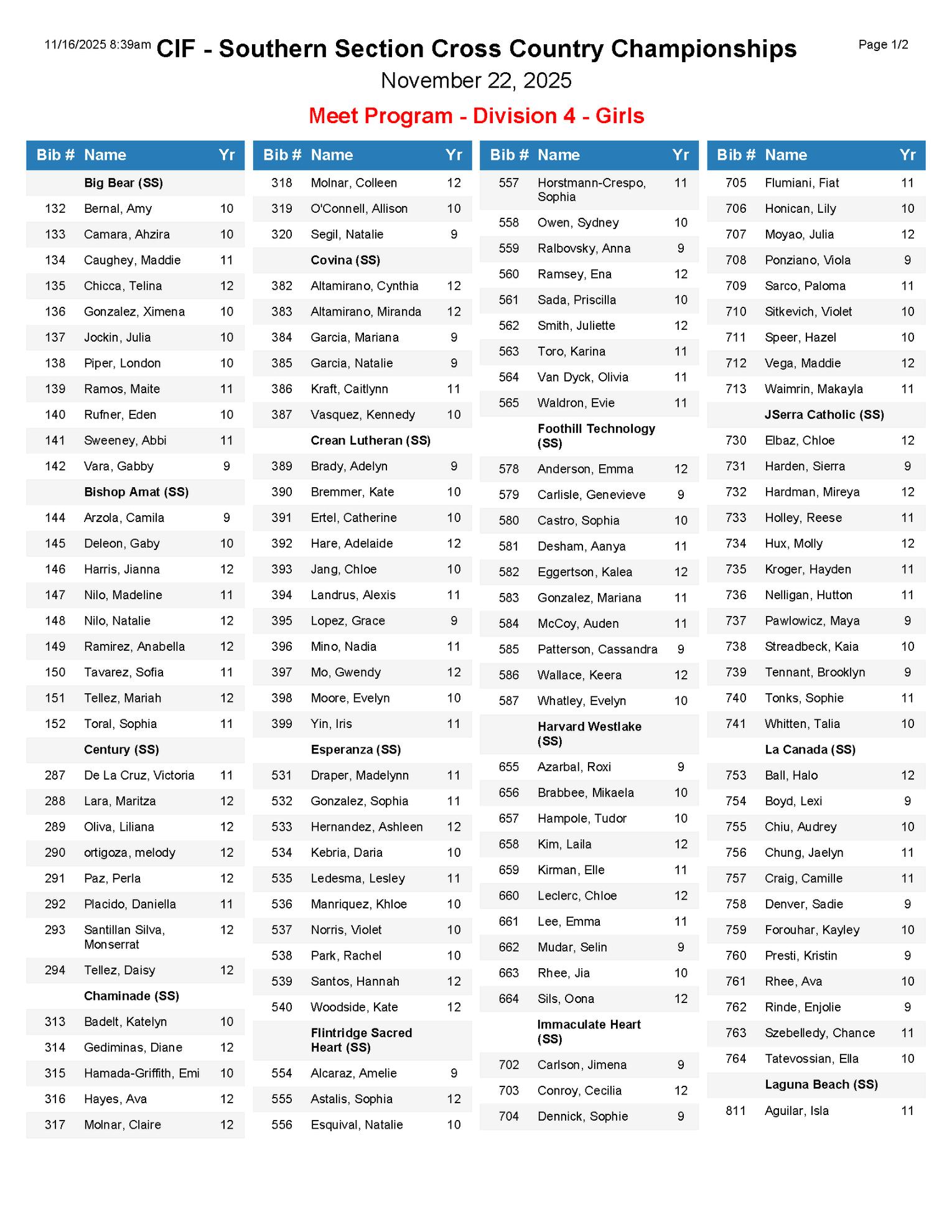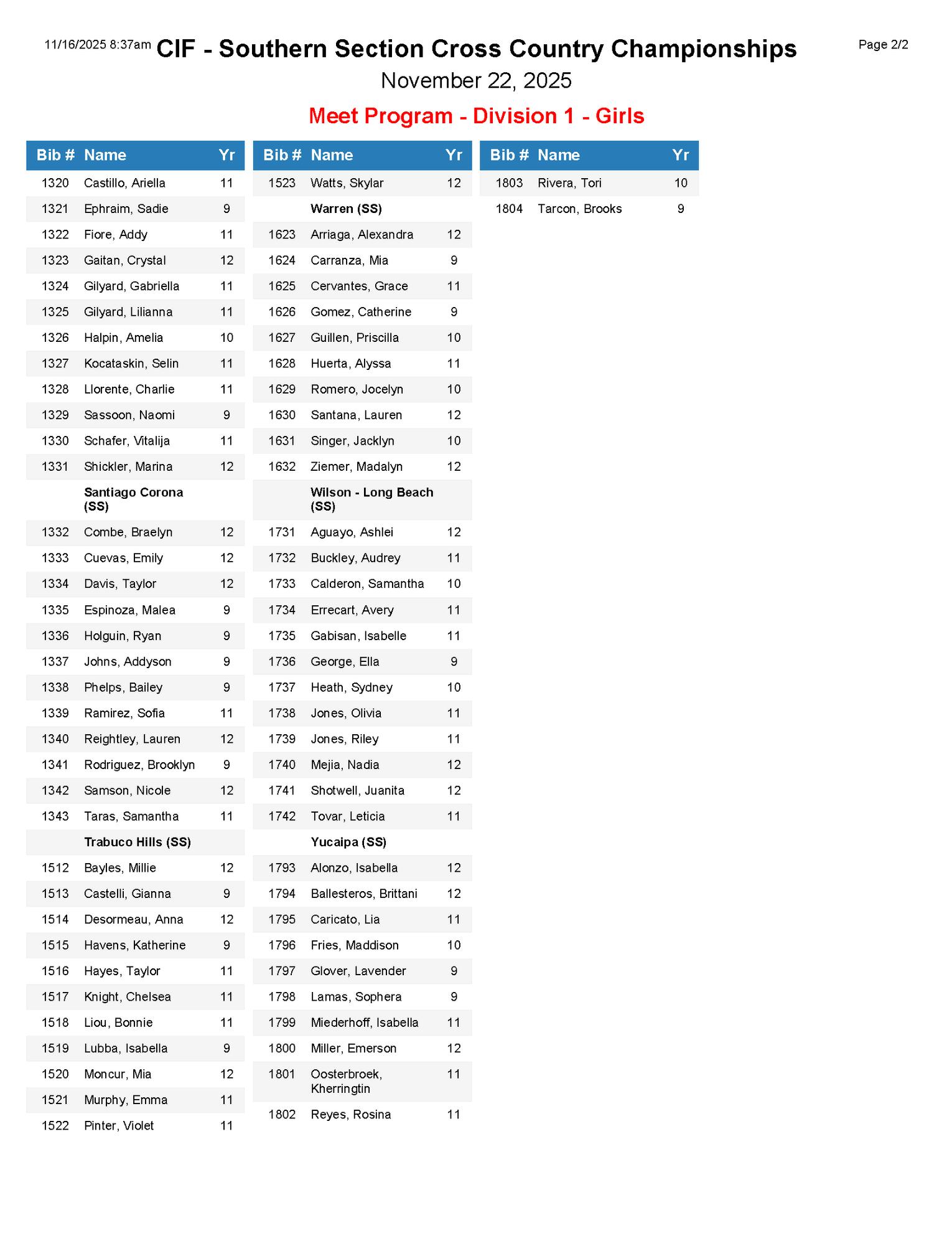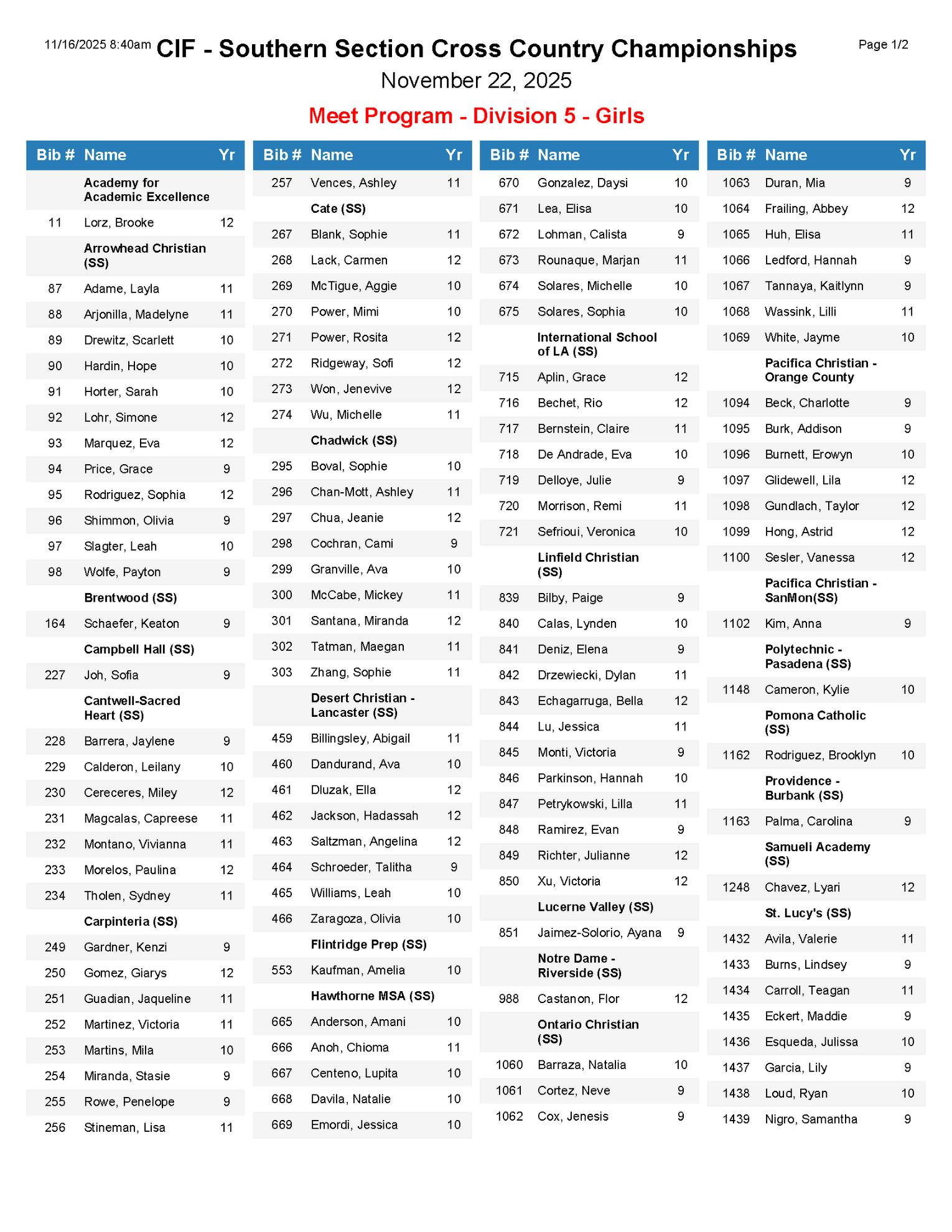 DIVISION 1 GIRLS SATURDAY NOVEMBER22,2025 MT.SANANTONIOCOLLEGE