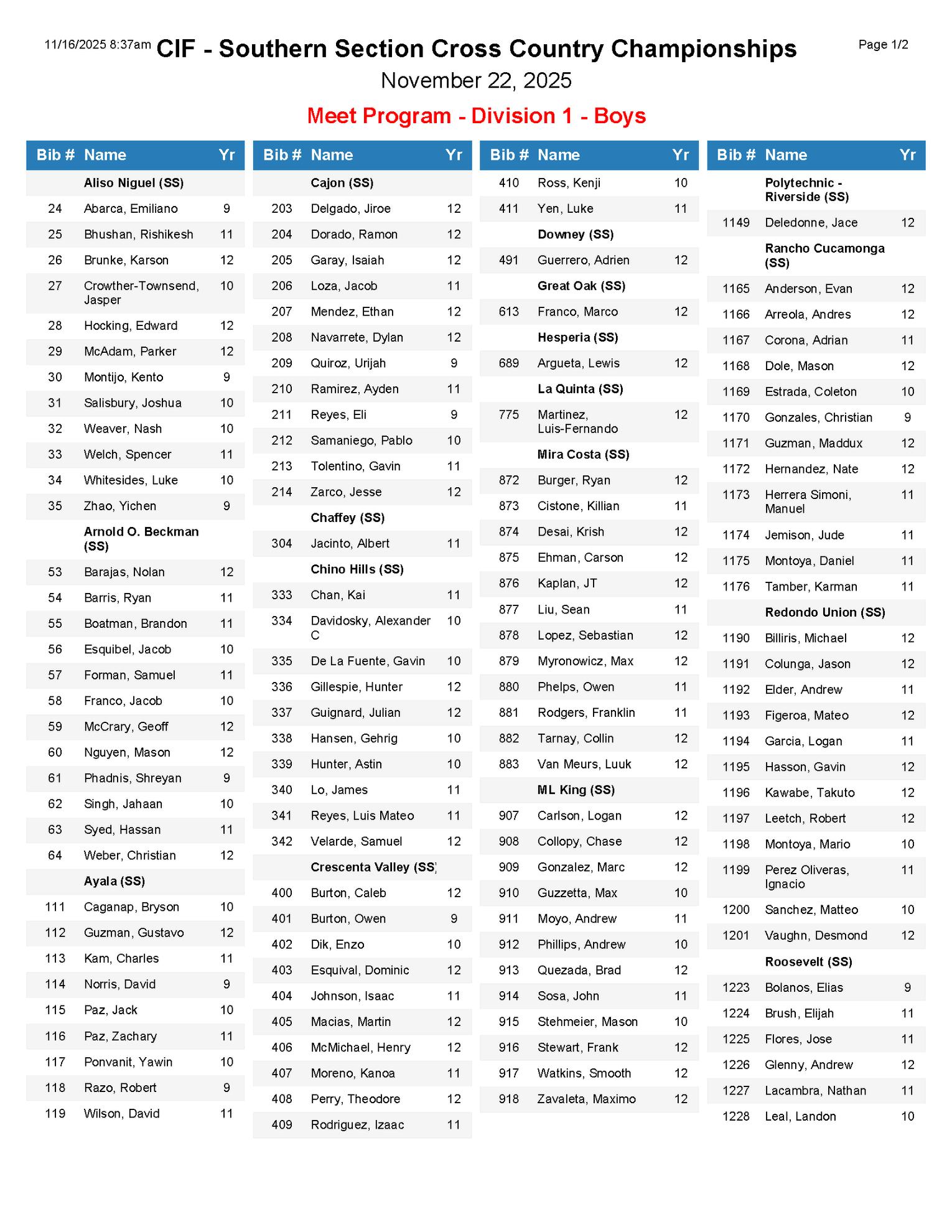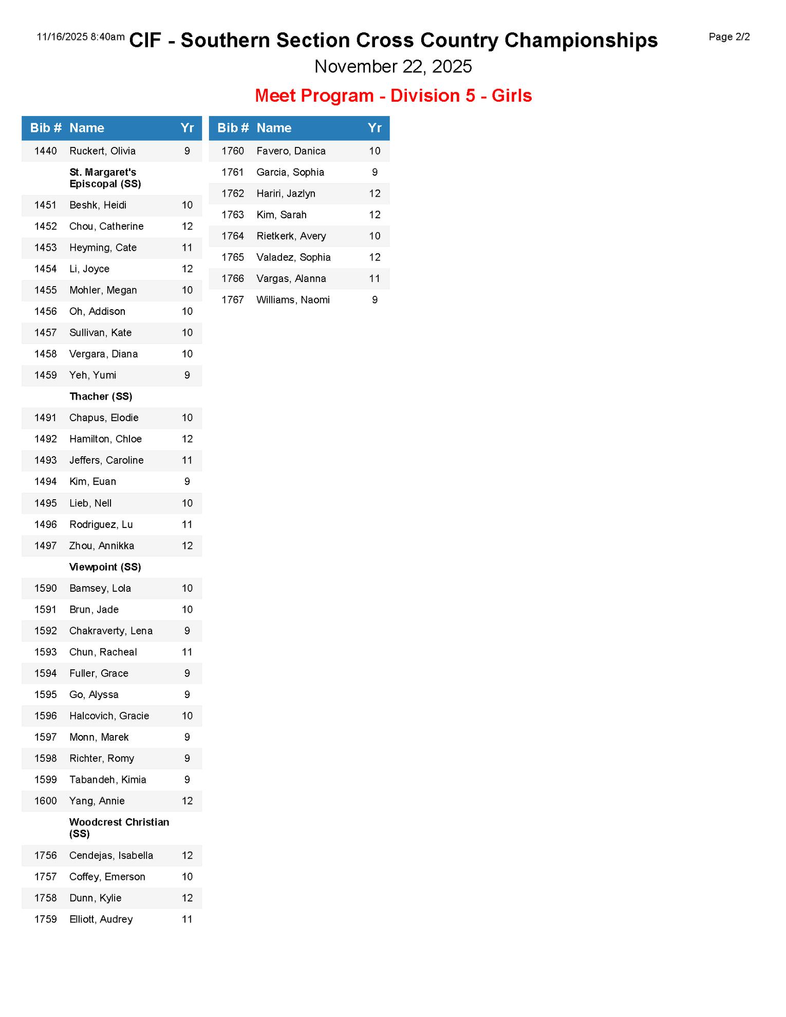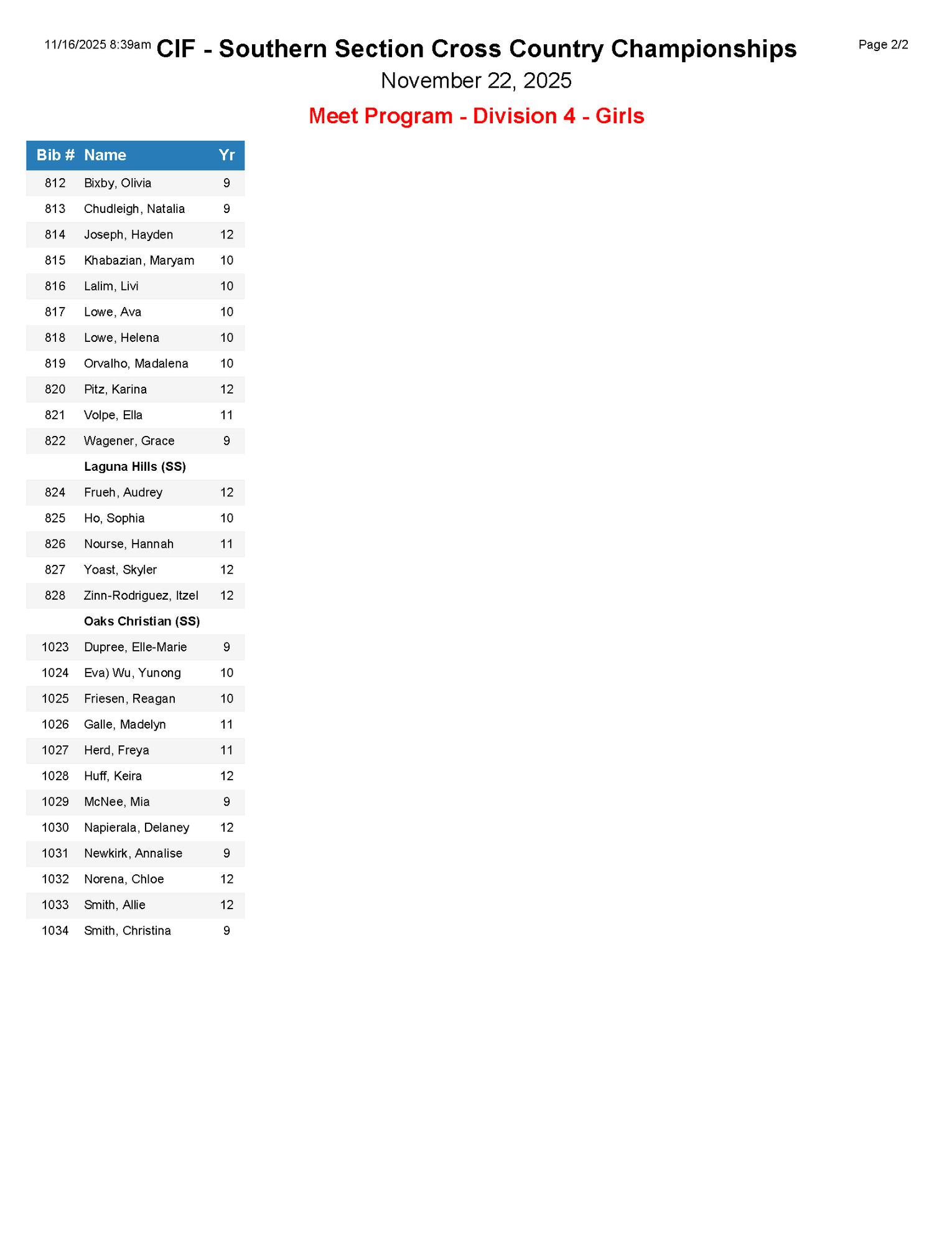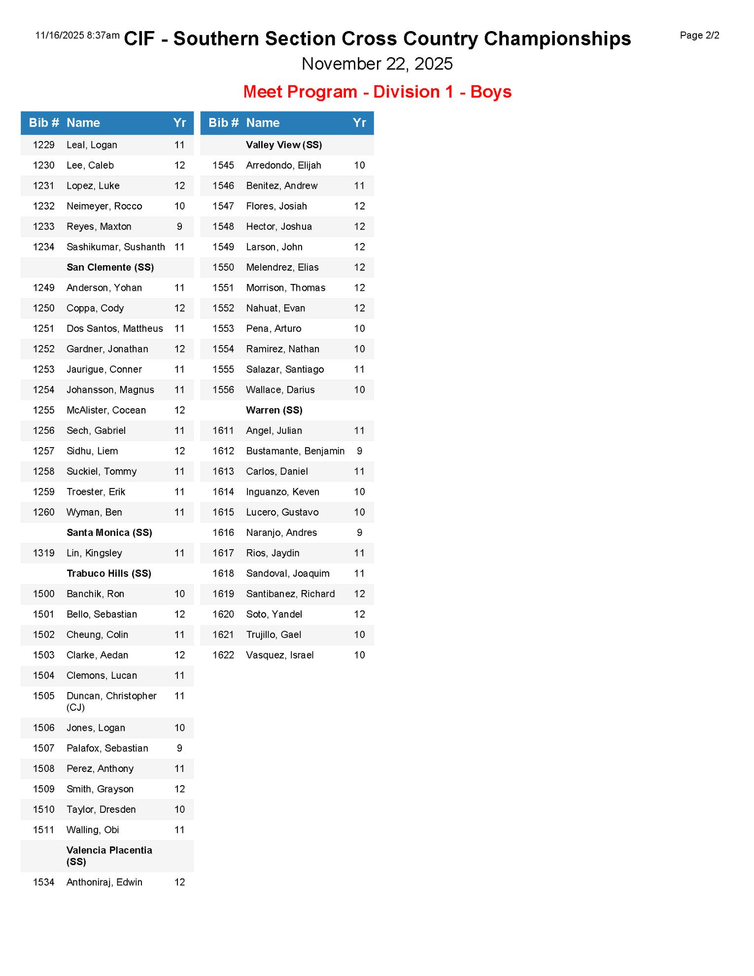 DIVISION 1 GIRLS SATURDAY NOVEMBER22,2025 MT.SANANTONIOCOLLEGE