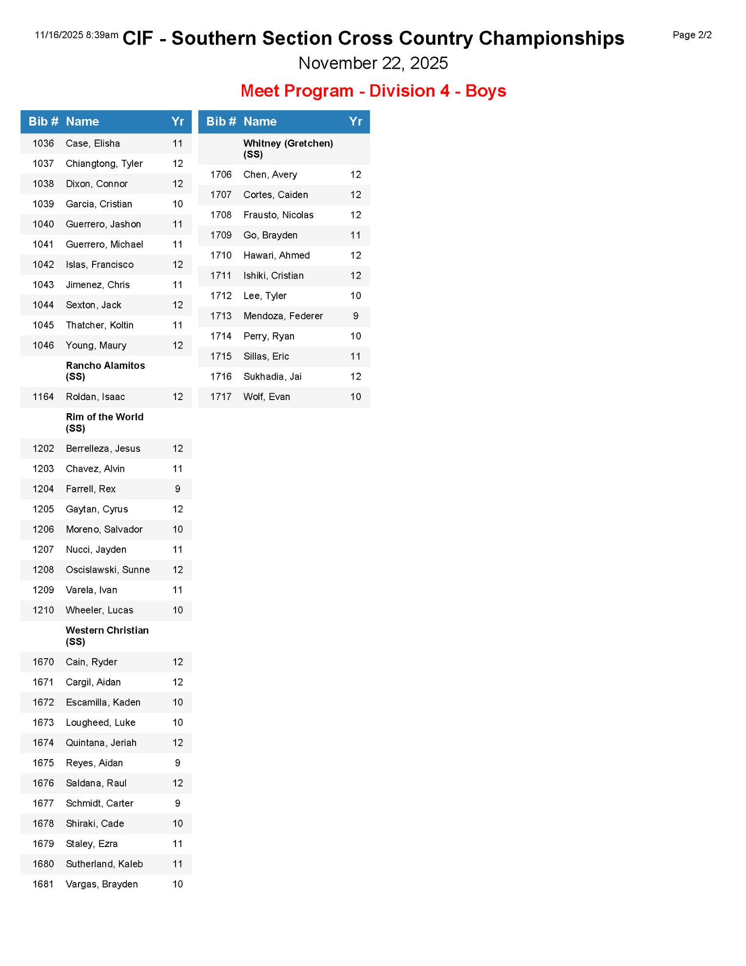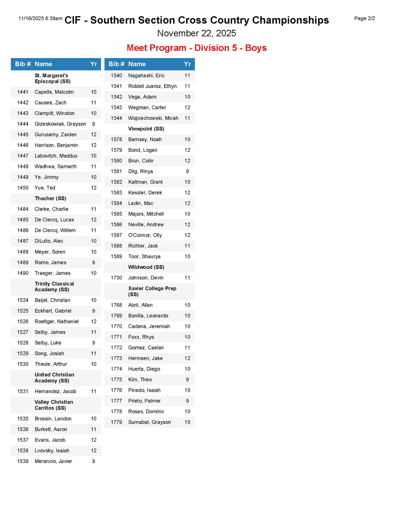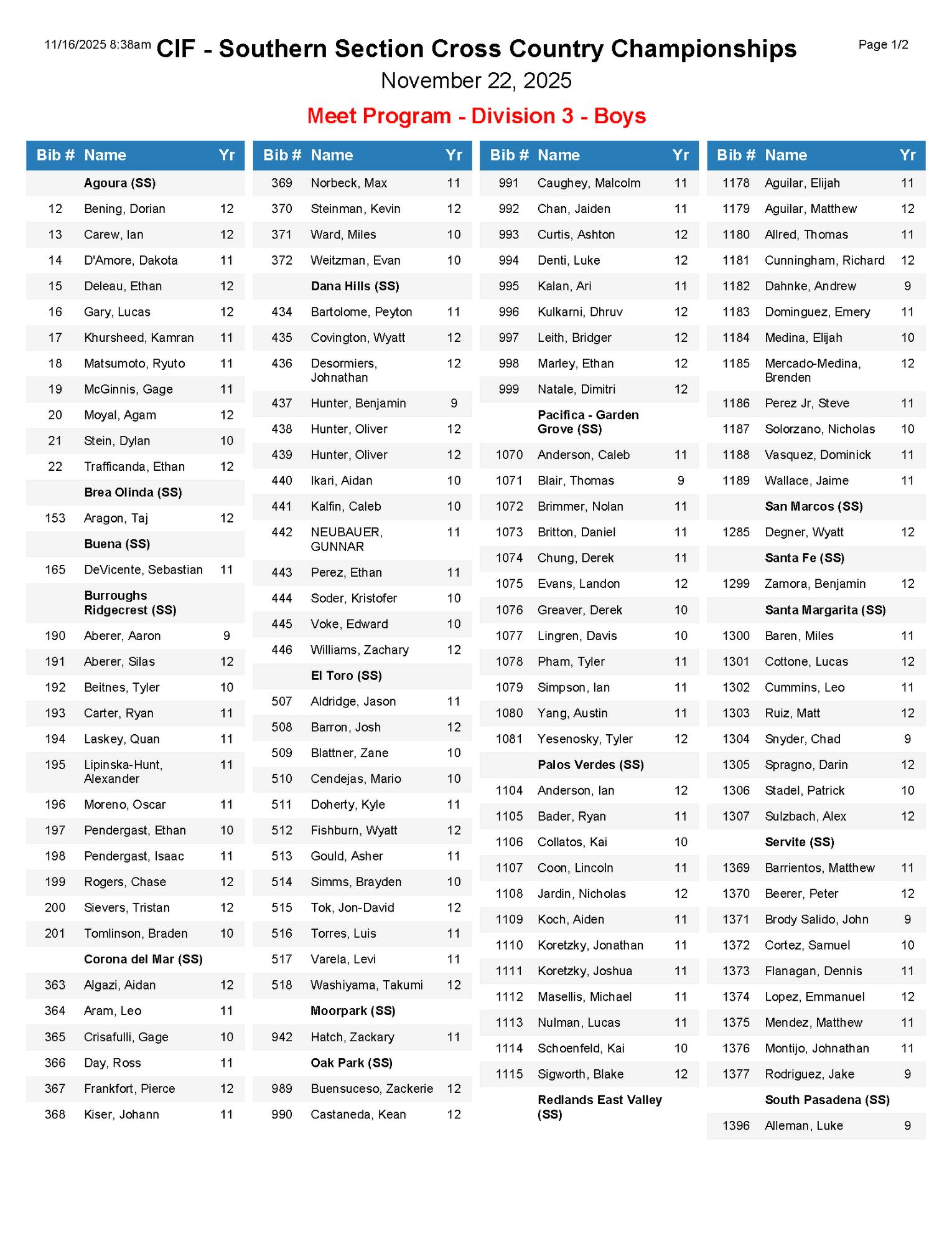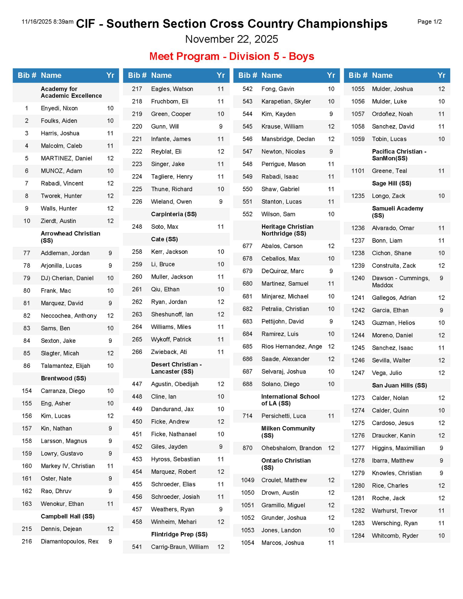 DIVISION 1 GIRLS SATURDAY NOVEMBER22,2025 MT.SANANTONIOCOLLEGE
