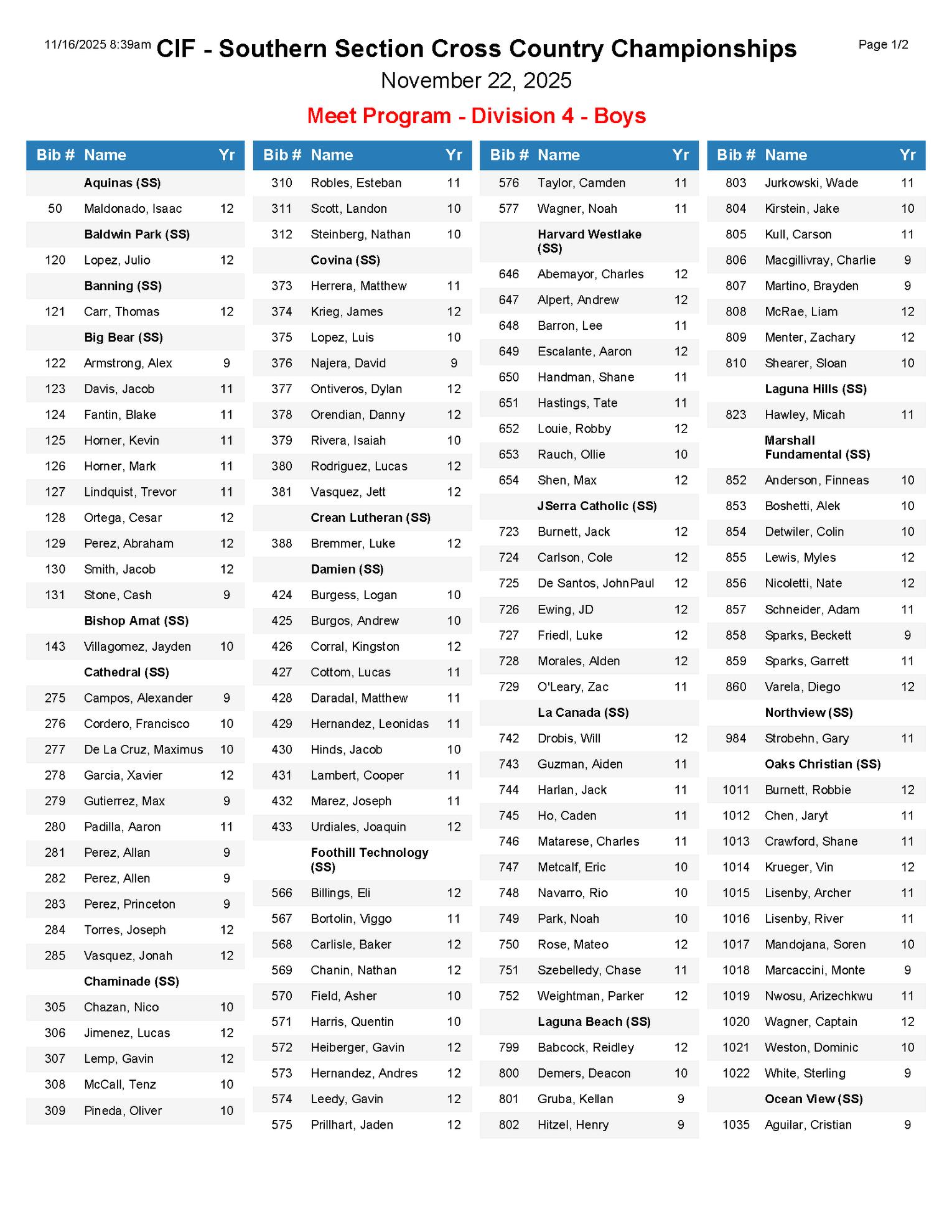 The quality of competition in the Southern Section is unmatched anywhere in the state or the country, for that matter so making it into the post season is quite an accomplishment that each of you should be very proud of.