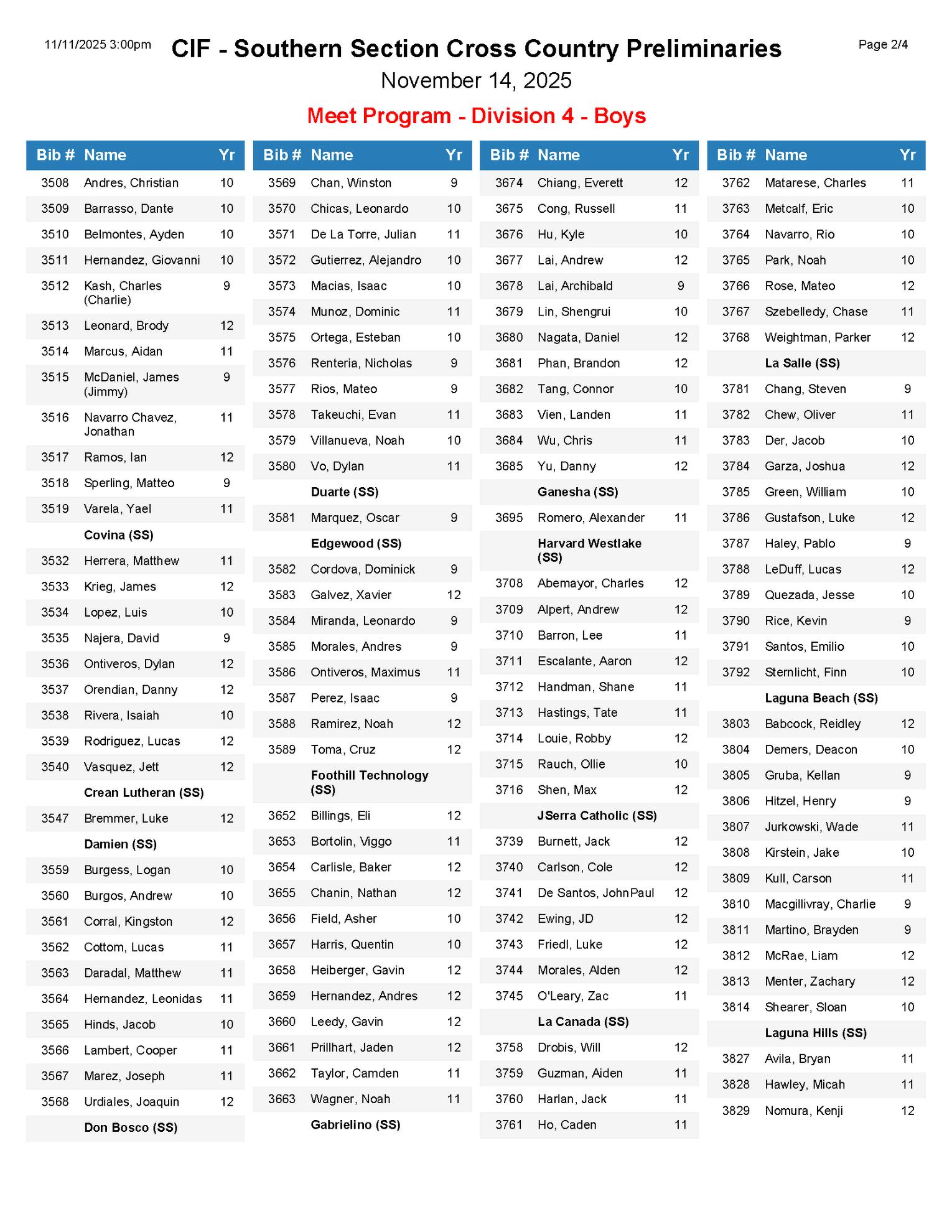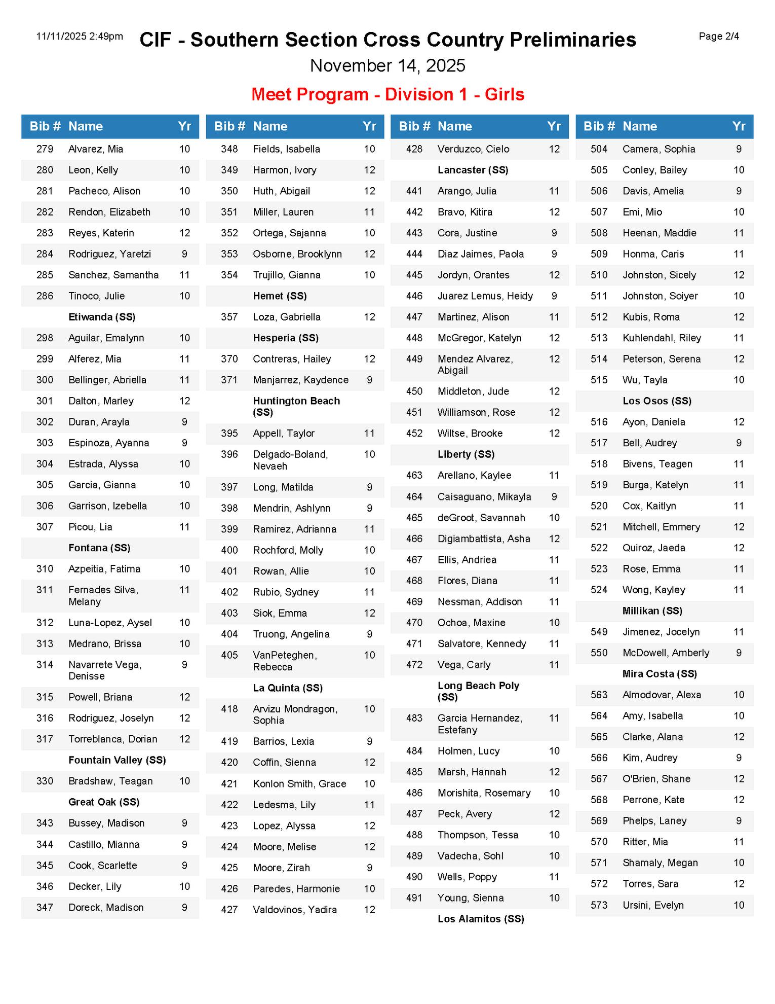 The quality of competition in the Southern Section is unmatched anywhere in the state or the country, for that matter so making it into the post season is quite an accomplishment that each of you should be very proud of.