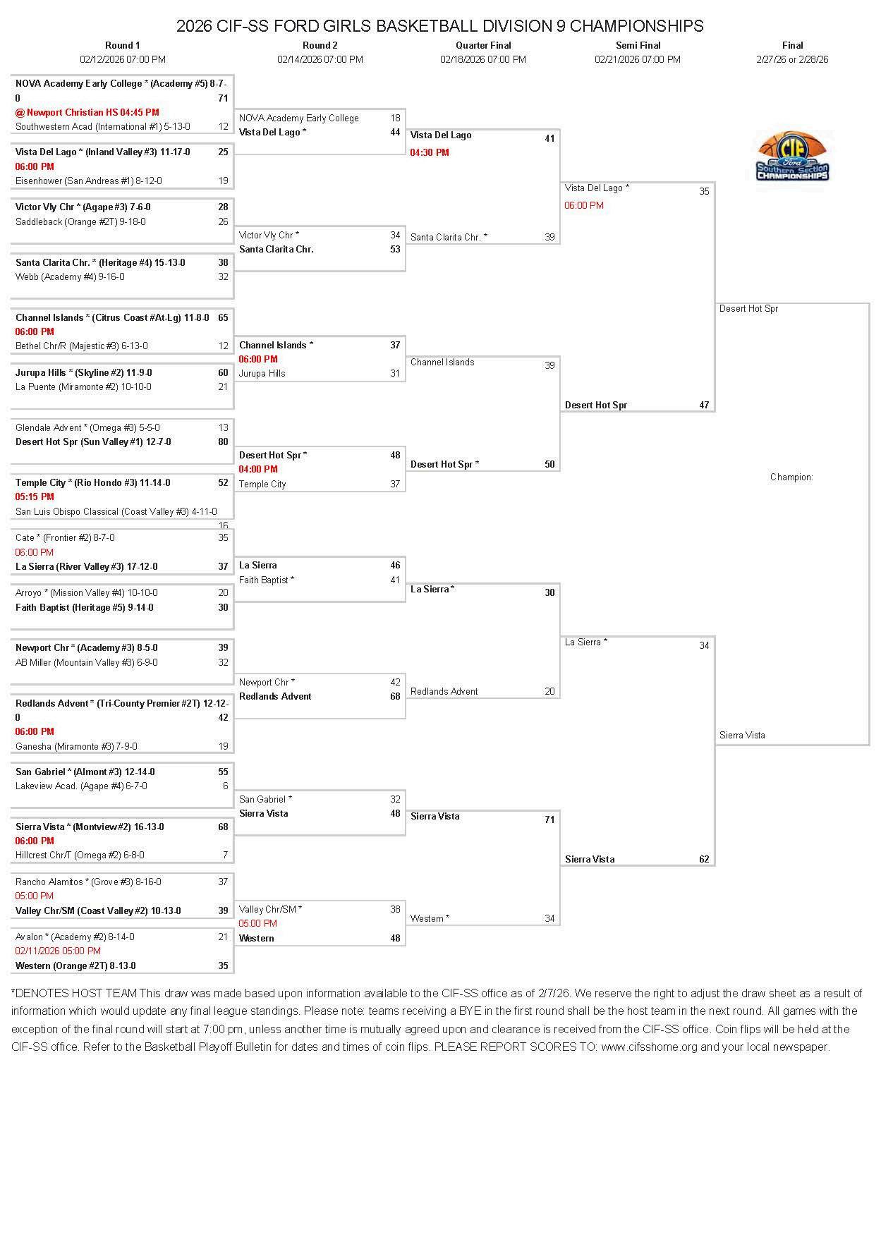 Best of luck to each team as you compete for the championship!