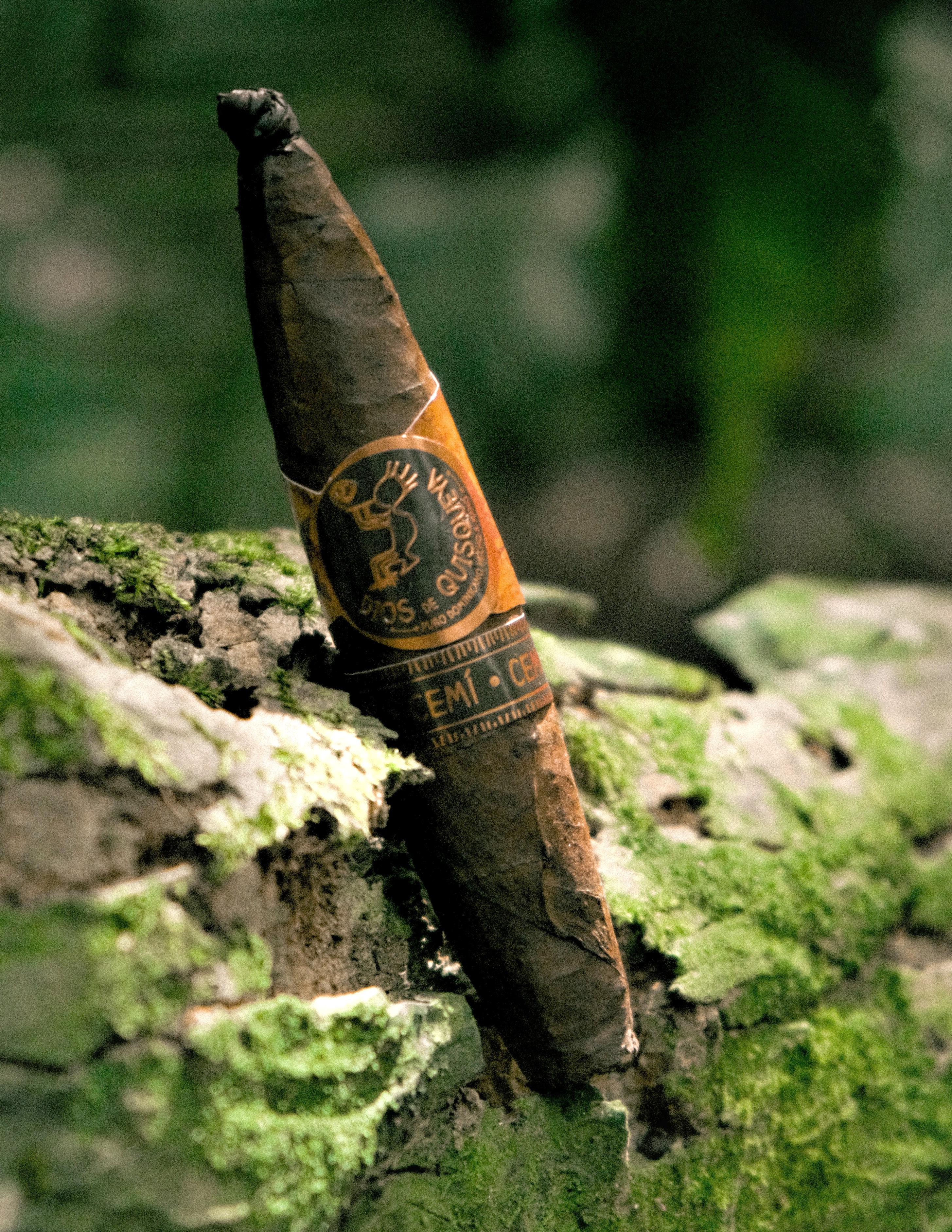 Desde lo profundo de los cacicazgos taínos nace Dios de Quisqueya, inspirado en sus creencias y deidades resaltando lo rústico y artesanal de su elaboración a mano, respetando las tradiciones milenarias del cultivo de la hoja del tabaco para convertirlas en el verdadero “Pachuché” que fumaban nuestros tainos. Desde una anilla que abraza y respeta la artesanía y evoca lo natural del proceso, hasta una selección de hojas totalmente criollas, le dan la personalidad y esencia a este puro dominicano, que cuenta con una extensa variedad de vitolas todas rústicas y artesanales para el disfrute del paladar experimentado. Las vitolas son en homenaje a las deidades indígenas Cemí, Maorocoti, Yocajú y Baguá cada uno con su estilo y fortaleza. // From the depths of the Taíno “cacicazgos”, Dios de Quisqueya was born, inspired by their beliefs and deities,