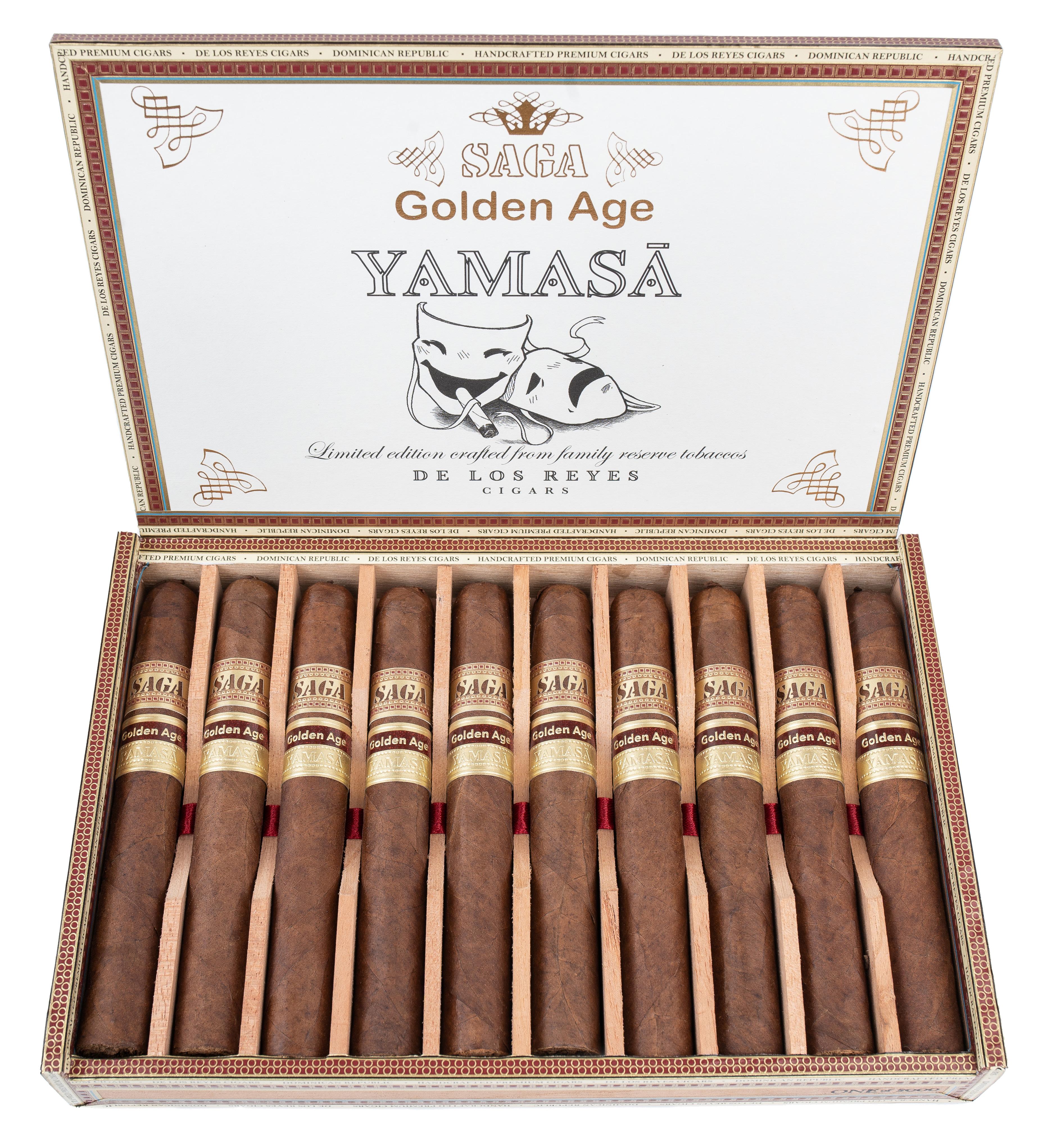 Yamasá significa “Tierras húmedas” en lengua taína antigua. Los suelos allí son visiblemente rojizos debido a la abundancia de minerales, principalmente hematita (piedra de sangre). Fue necesario todo el conocimiento generacional de Monika Kelner para domar las muchas propiedades que presentaba la tierra y convertirlas en un tabaco familiar sabroso y único. La línea Golden Age en Saga está dedicada a presentar tabacos raros y únicos que reflejan la era pionera de pensar fuera de la caja al desarrollar tabaco. Elaborado con la capa Yamasá de la cosecha 2019, la edición 2023 estará limitada a 5,000 cajas de 10 cigarros cada una. // Yamasá means “Humid grounds” in ancient Taino language. The soils there are visibly reddish due to an abundance of minerals, mainly Hematite (blood stone). It took all the generational knowledge of Monika Kelner to tame the many properties the land presented and to turn them into a flavorful and unique family tobacco. The Golden Age line in Saga is dedicated to present rare and unique tobaccos that reflect the pioneer era of thinking outside the box when developing tobacco. Made with the Yamasá wrapper from the 2019 crop, the 2023 edition will be limited to 5,000 boxes of 10 cigars.