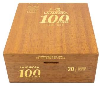 La Aurora anuncia el relanzamiento de La Aurora 100 Años con un nuevo diseño de caja. El mismo cigarro que se lanzó originalmente en 2003, 100 Años, celebra un siglo de producción superior de tabaco y excelencia en cigarros. Hecho a mano con tabaco 100 % dominicano, esta mezcla rinde homenaje a nuestra tierra y legado ofreciendo una experiencia de fumada lujosa.