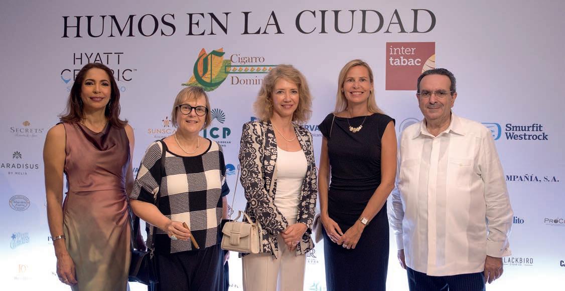 Josefina Pichardo y Ángel García junto a las embajadoras Rita Hammerli, de la Confederación Suiza; Katja Afheldt, de la Unión Europea y Maike Friedricsen, embajadora de la República Federal de Alemania // CIGARRO DOMINICANO’s directors together with the ambassadors of the Swiss Confederation, the European Union and the Federal Republic of Germany