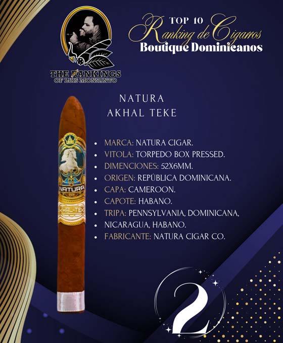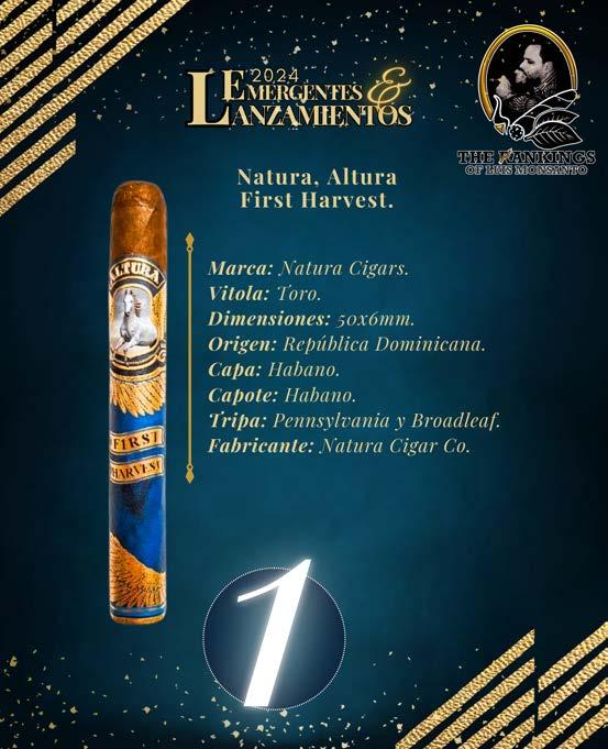 NATURA ALTURA FIRST HARVEST, logró la posición número uno en Lanzamientos Emergentes 2024 y NATURA AKHAL TEKE ganó la posición número dos en el Top 10 Ranking de Cigarros Boutique Dominicanos, ambos premios son de “The Rankings of Luis Monsanto”. // At “The Rankings of Luis Monsanto” NATURA ALTURA FIRST HARVEST, achieved the number one position in Emerging & Launches of 2024 and NATURA AKHAL TEKE won the number two position in the Top 10 Dominican Boutique Cigars Ranking.