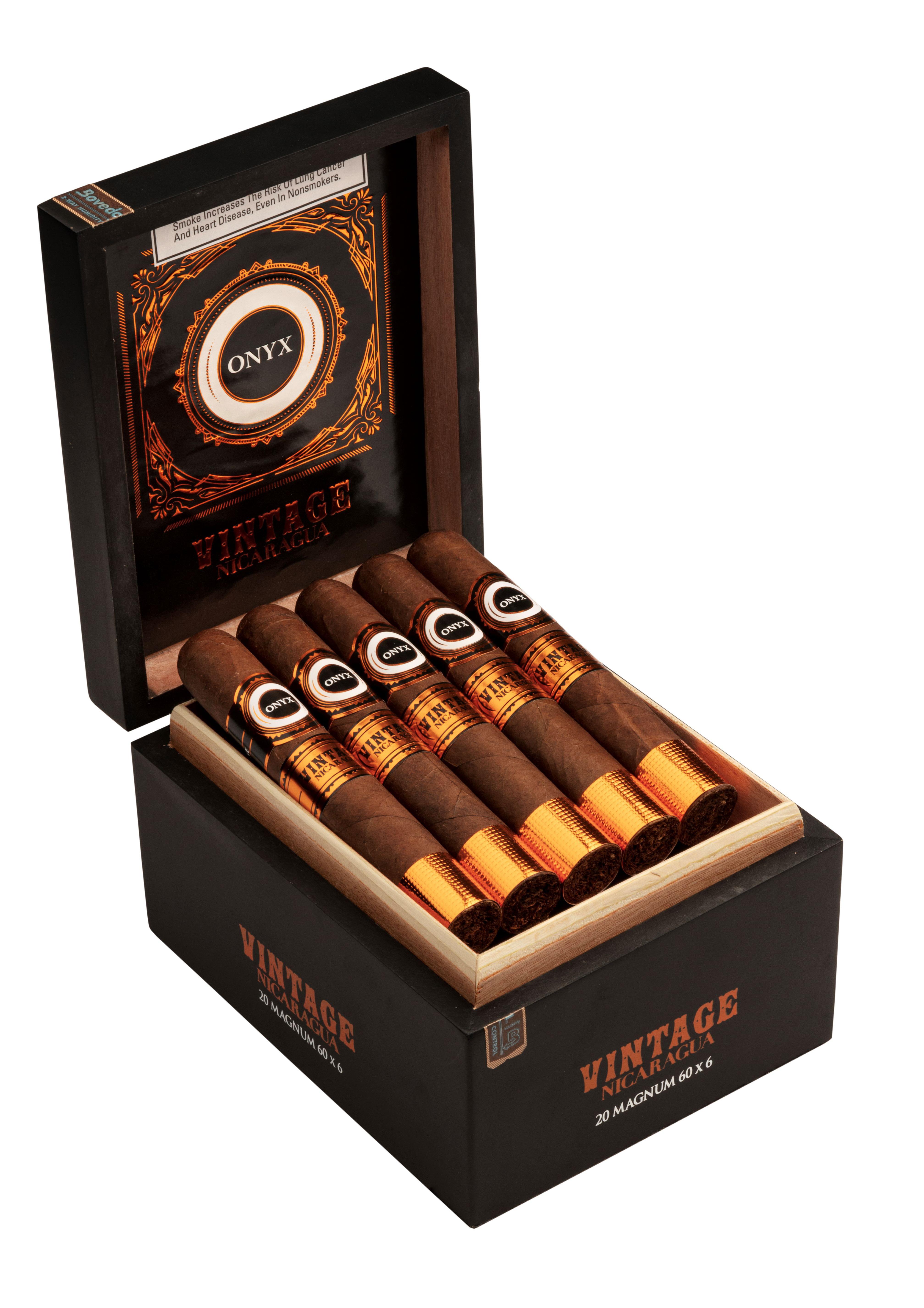 aged tobacco handmade at the renowned Tabacalera AJ Fernandez. Onyx Vintage Nicaragua will be available in sleek 20-count boxes painted matte black with vintage-inspired copper branding. The culmination of expertise and dedication, this blend offers a harmonious interplay of flavors and aromas that is destined to captivate seasoned connoisseurs and newcomers alike. The Onyx Vintage Nicaragua is a follow-up to the Onyx Bold Nicaragua which is also handmade at the AJ Fernandez factory and the Onyx Reserve made by the Grupo de Maestros of the Tabacalera de Garcia factory in La Romana, Dominican Republic.