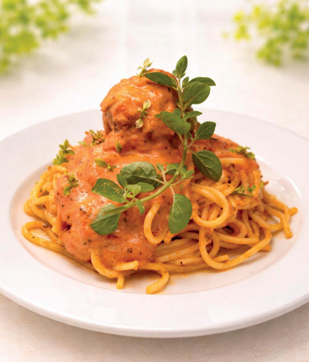 Save some of the sauce to mix with your spaghetti, then add the meatballs to the remaining sauce and cook for an additional 20 minutes until the flavours meld.