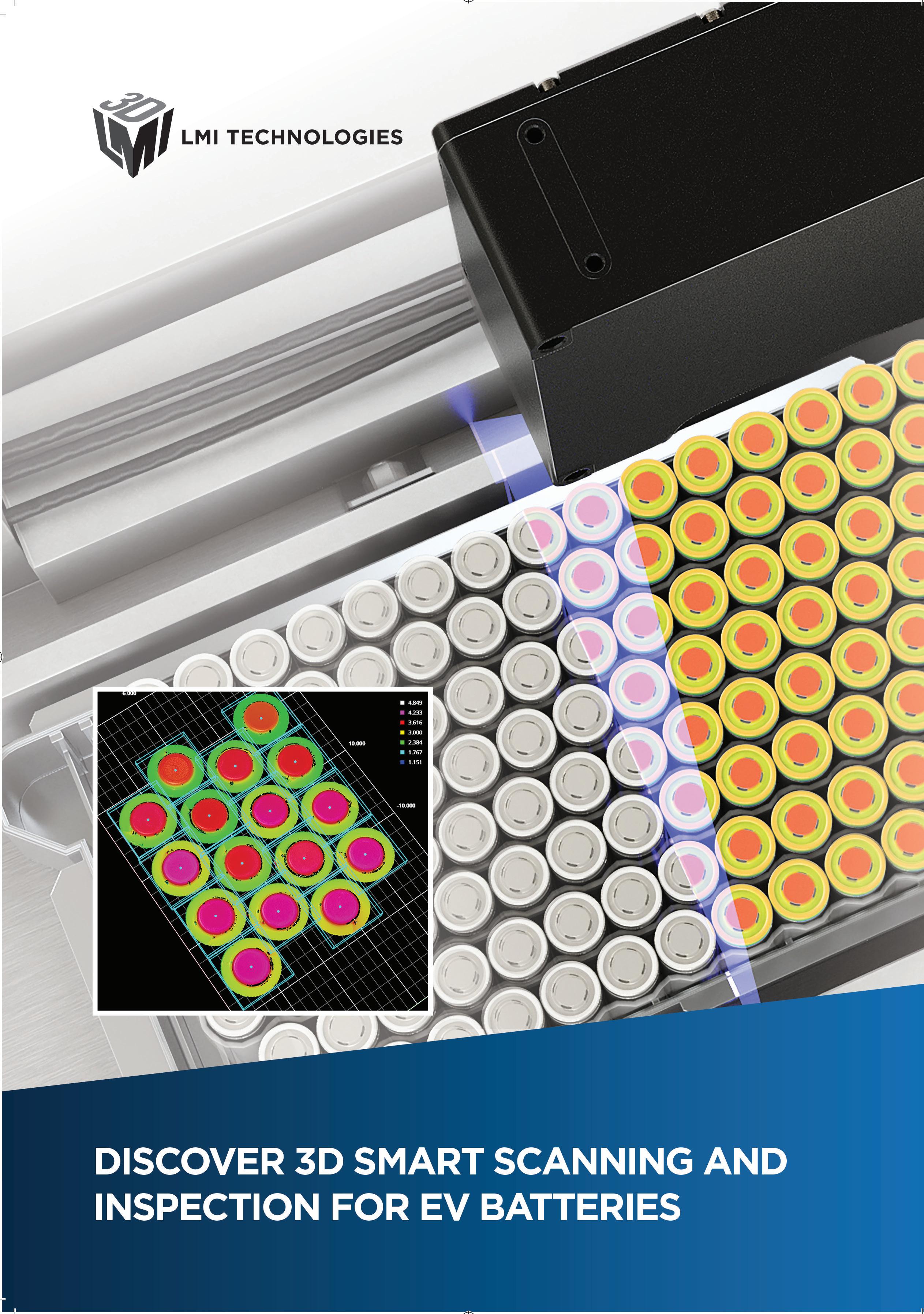 A custom 2MP high-speed imager, optimised optical design, and blue laser light generate excellent data with highly repeatable results on shiny, machined-metal EV battery surfaces. lmi3d.com