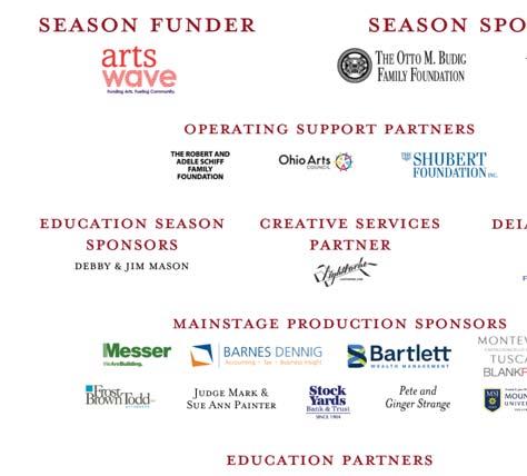 Cincinnati Shakespeare Company acknowledges the following partner companies, foundations and their employees who generously participate in the annual ArtsWave Campaign at the $100,000+ level. Thank you!