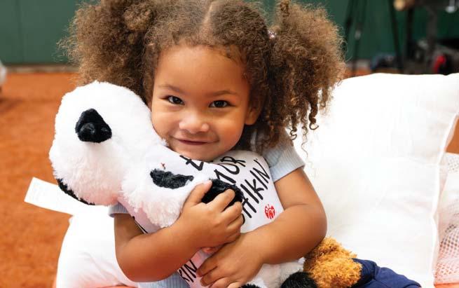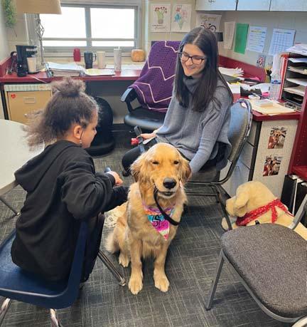 Child Life Specialist Kerri Birkett has seen animals’ calming effects many times as the facility dog handler of a pup named Leica for the Children’s Hospital Canine Comfort Facility Dog Program. “Healthcare visits are stressful for patients and their caregivers, and Leica supports patients with disabilities who have difficulties coping with their visit,” she says. “Leica’s presence, love, and comfort, helps create a safe and supportive environment for patients to receive necessary medical care.”