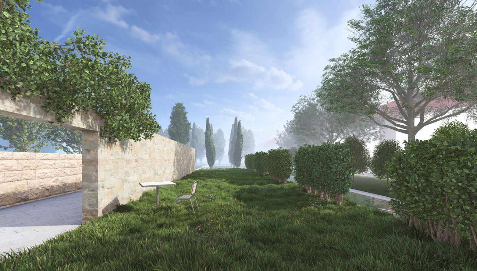 Maintaining the decomposition features of the image and provides a garden as the transition to guest room
