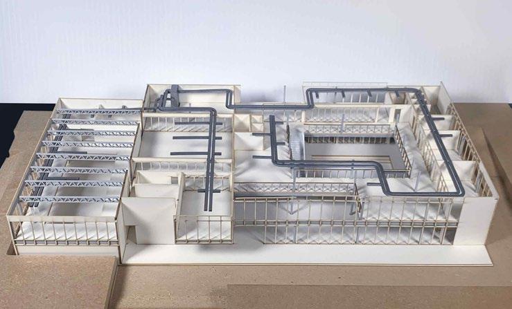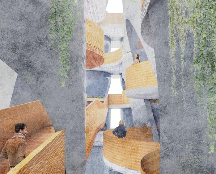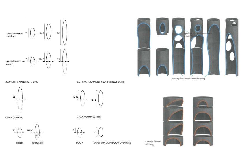 The architecture intervention employs three key architectural strategies to rejuvenate the aging concrete of the building. Initiating with the silo openings, strategic physical movements and visual connections guide the creation of openings at specific dimensions, maintaining a consistent punch shape for a cohesive design language.