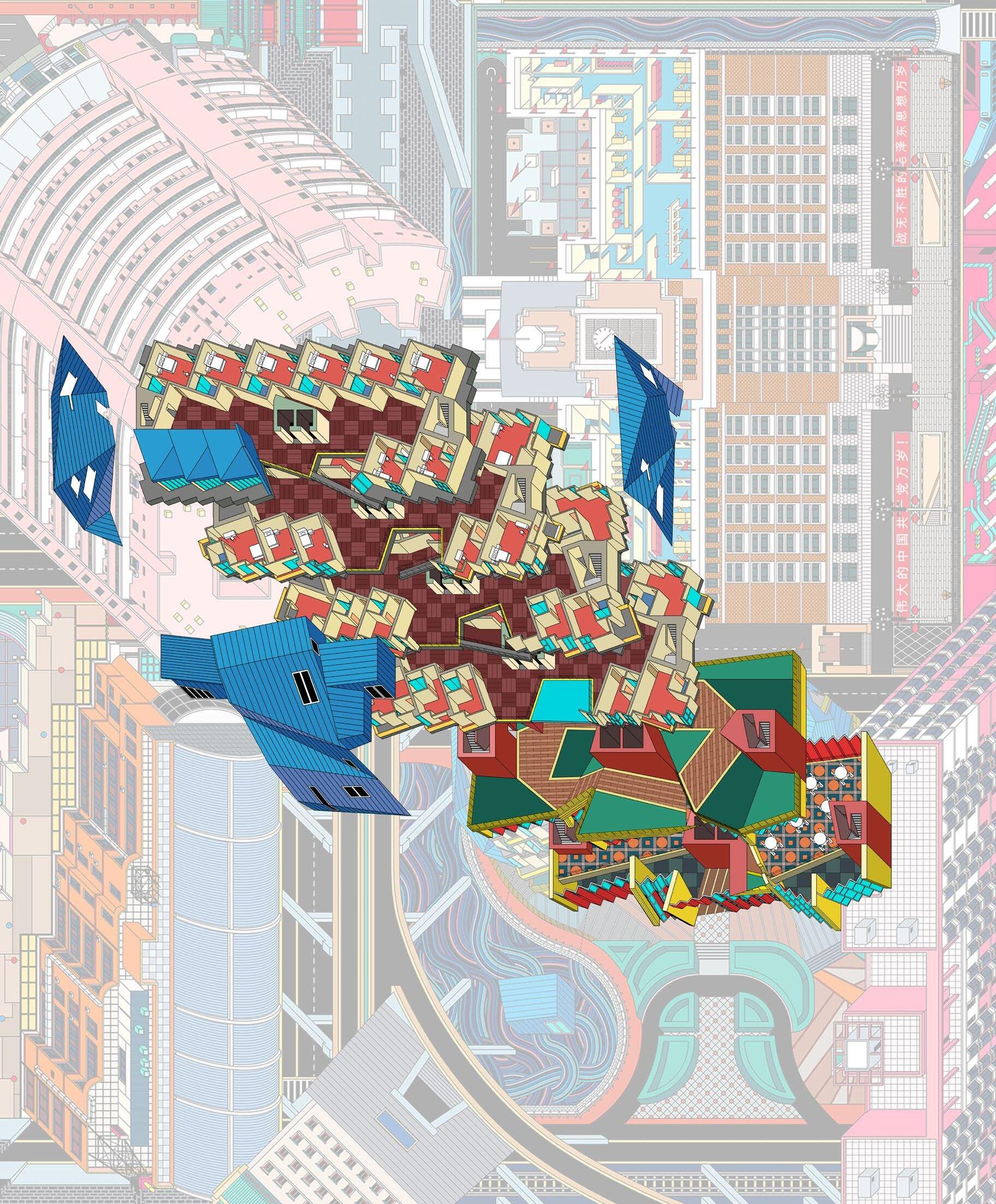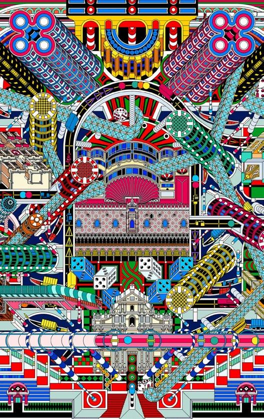 Macau is a thriving gaming and entertainment capital known as the Las Vegas of Asia. Such analogies naturally remind architects of the classic “Learn from Las Vegas.” The book evokes a return to ornamentation and symbolism in architecture, as well as a new focus on everyday architecture. The project observes Macau from a similar perspective: from Grand Lisboa to Sands, from Venetian to the City of Dreams; Macau’s casino buildings never lack repeated luxurious decorations and exaggerated eye-catching shapes. The drawing aims to promote the spirit of “learning from Las Vegas,” embracing the aesthetics of casino architecture that academia dismisses. From a unique perspective, the casino building is regarded as the proud symbol of Macau and the protagonist of the drawing, and the historical landmarks and daily residences are supporting roles, creating a brand new urban portrait for Macau.