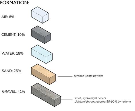 The project centers on the innovative transformation of the widely employed architectural material, ‘concrete,’ with a focus on developing a sustainable and lightweight variant that integrates with waste materials. Acknowledging that traditional concrete is often perceived as environmentally unfriendly, the goal is to explore ways to extract its potential by incorporating waste materials.