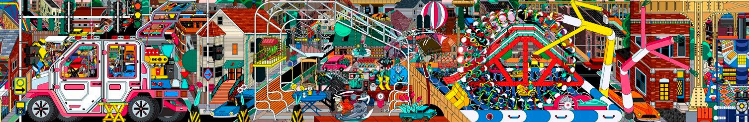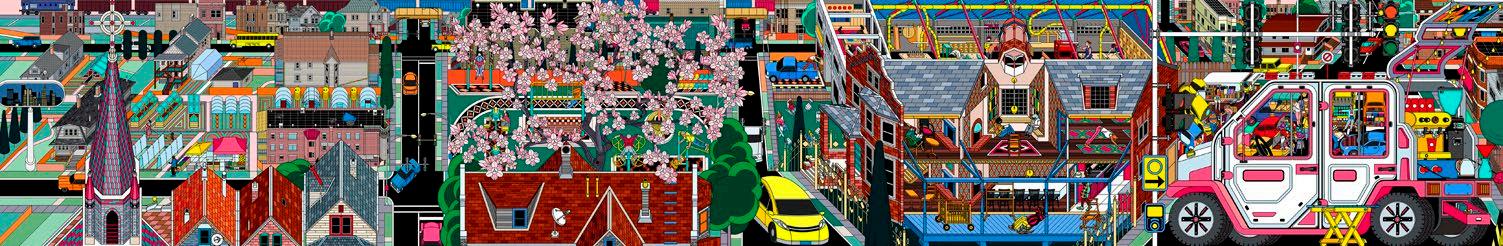 In the form of a traditional Chinese scroll, Still Life in the Windy City extends the definition of objects to the scale of the city. The project illustrates life in an imagined community in the southwestern suburbs of Chicago that Drawing Architecture Studio developed referencing public space in Beijing. In Chicago and Beijing, found objects may play a more influential role in the community public space than architecture. Objects are usually easier to make, more convertible, more mobile, or sustainable, and they can bring more resources together. This drawing depicts eight scenarios around different objects transforming their environment, including a tent that becomes an outdoor gym and furniture that creates a carpenter workshop.