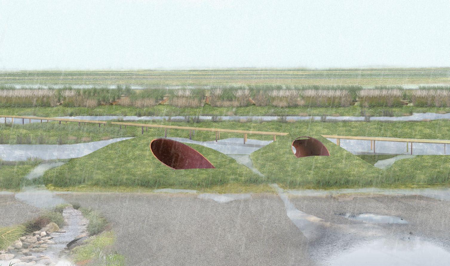 The design approach enhances water purification and revitalizes neglected urban spaces. Simultaneously, it fosters ecological restoration by cultivating plants that contribute to water management. Ultimately, the project establishes a protective yet open edge for Rumney Marsh, promoting a harmonious balance between urban development and ecological resilience.