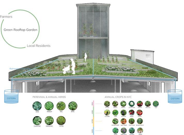 Various vegetation and small plants can be distributed on the roof to create a wonderful gathering space and light farming zone while enhancing the relationship between the residents and community farmers.