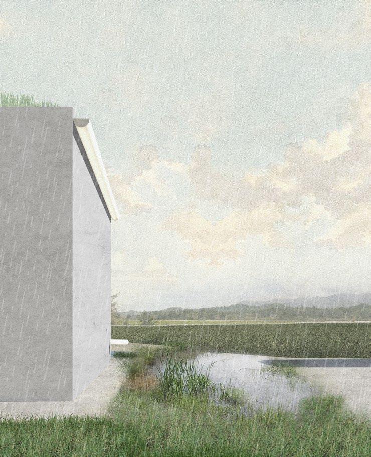 Beyond site-specific challenges, the project addresses a broader condition in contemporary Italian urban spaces-a sense of placelessness suspended between time-by reimagining a fragmented parking and retail area as a resilient civic landscape. Located within a floodplain, the proposal responds to water and heat challenges by transforming