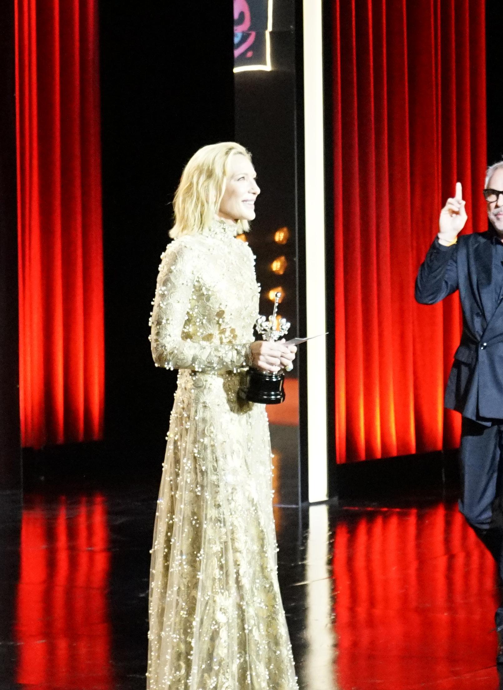 Alfonso Cuarón, director mexicano con quien Blanchett ha trabajado en la serie ‘Disclaimer’, fue el encargado de entregarle el prestigioso galardón, destacando el rigor y el virtuosismo de la actriz.