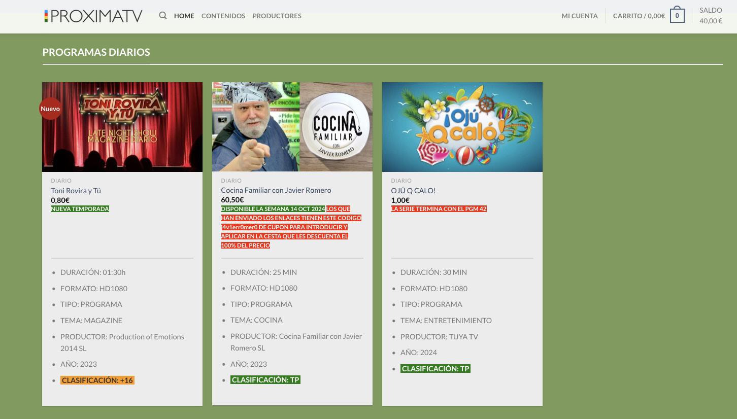 Al frente de Próxima TV se encuentra Pepe Torres, de la productora Borococo, quien dirige esta plataforma. Además de las producciones de los canales asociados, presenta otros contenidos de interés para las televisiones de Acutel, con temáticas variadas y en programas muy conocidos por los telespectadores de los canales locales. Encontramos formatos dedicados al mundo del motor, espectáculos musicales, la cocina o el late night de Toni Rovira, entre otros.