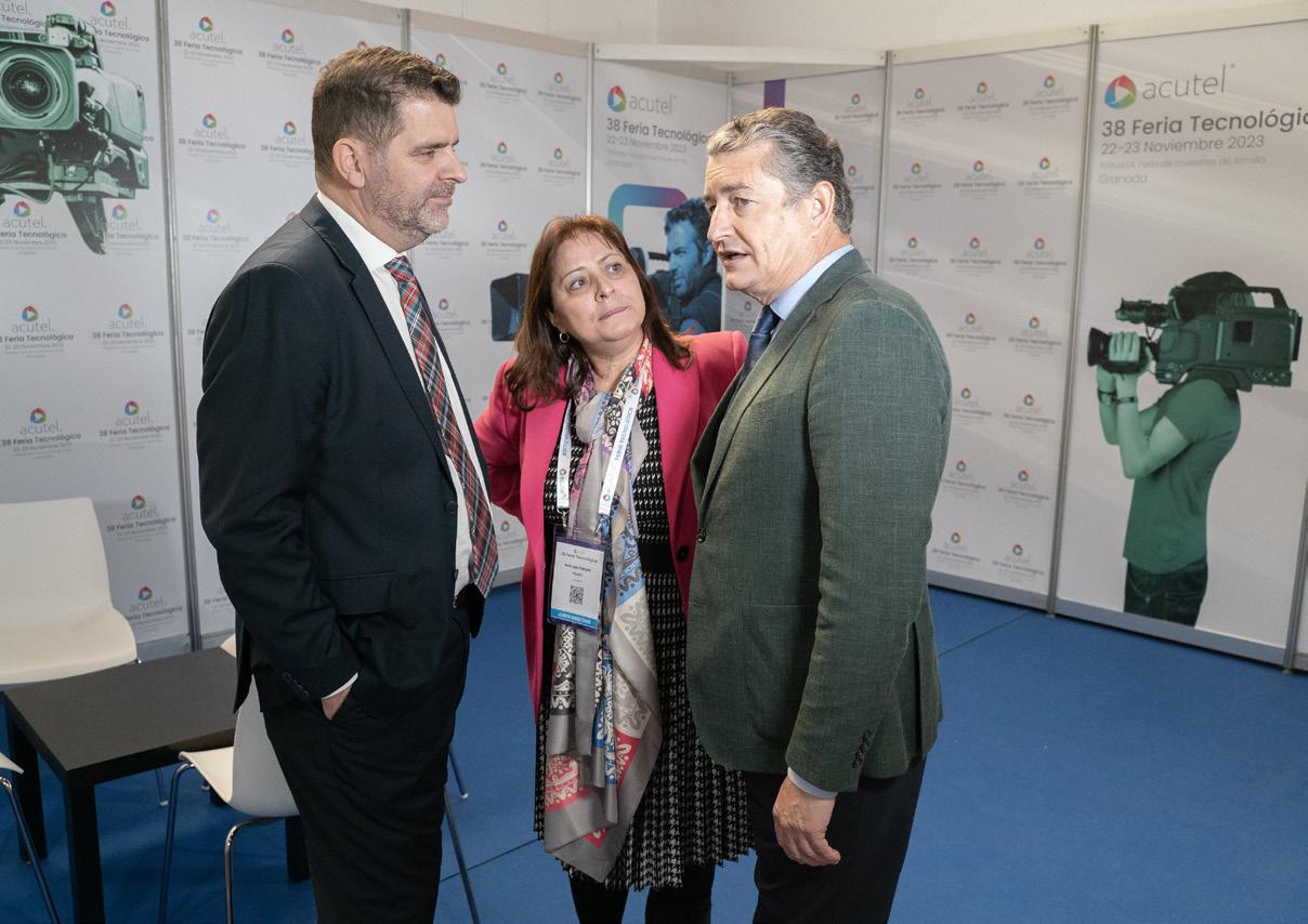 El consejero, Antonio Sanz, conversa con el presidente y la vicepresidenta 2ª de Acutel.
