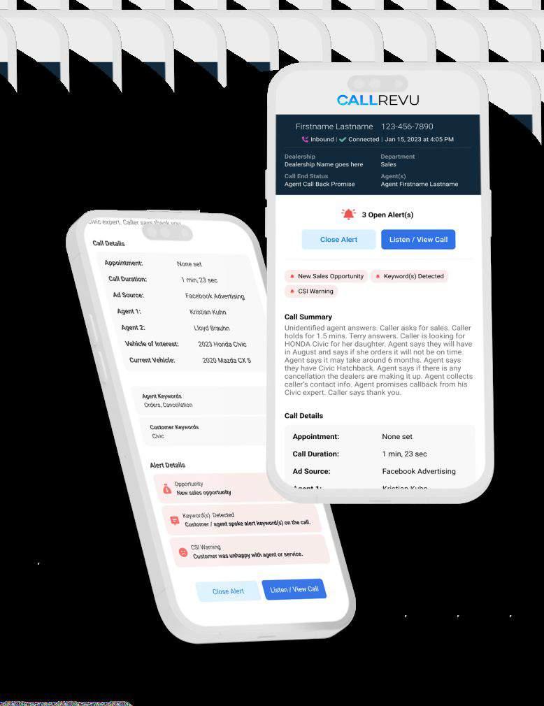 the car. CallRevu was born out of a dealership when a dealer was dissatisfied with the responses of his salespeople to customers, so he began to monitor and record their calls, and later, called his salespeople to his office to review their responses. “You could have said this,” he pointed to them, explaining how they could have responded more effectively. This led to the creation of CallRevu.