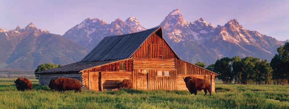 “I came for the winter, but stayed for the summer” is a popular saying by locals who have long understood the lure and beauty of Jackson Hole during the all-tooshort summer months. It’s a postcard come to life, framed by the magnificent Teton Range. Thanks to the efforts of generations of conservationists, 97% of this beautiful landscape is public land and protected from development. For outdoor enthusiasts, Jackson Hole has a role as both a sanctuary and a playground, no matter what the season. There are hundreds of trails to tackle, many mountains to climb and ski down, abundant wildlife to spot, rivers and lakes to float and
