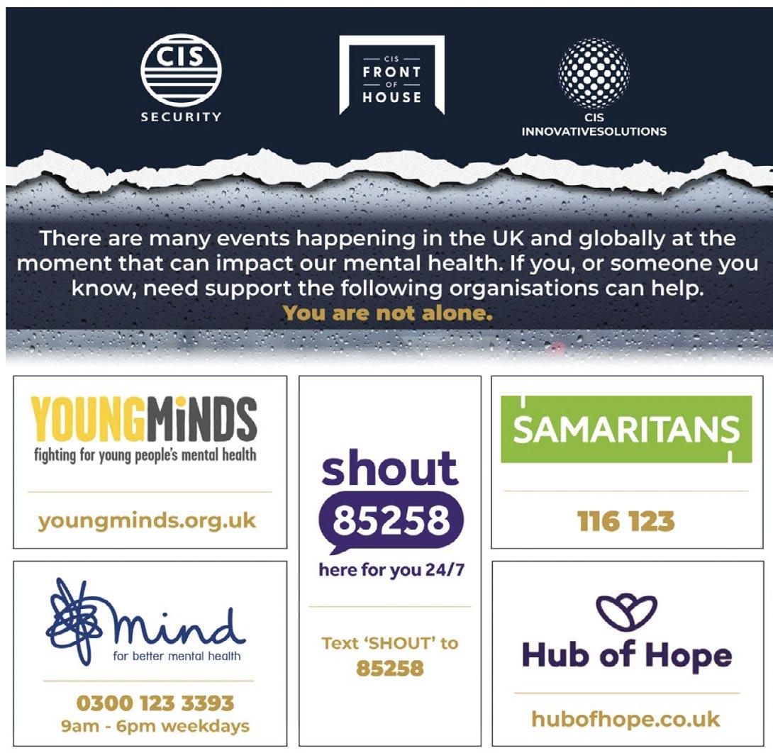 All over the UK and the world, there have been tragic events that have affected many. We must protect our mental health and take the correct actions to ensure our wellbeing. If you, or someone you know, is suffering please see the below organisations that can make a difference and help.