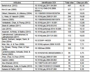 Por otro lado, la información obtenida deja ver que la distribución de artículos por autores es equitativa, con la excepción de dos autores que concentran más publicaciones, de igual forma se encuentran muchas revistas que publican, identificándose un predominio o especialización en unas pocas revistas, lo cual puede ser una muestra de que la temática aún está abierta a diferentes ópticas y teorías que propongan nuevas perspectivas de contribución y análisis del tema.