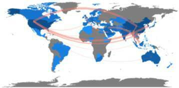 el análisis del mapa global colaborativo muestra las relaciones entre países (Figura 21), muestra las relaciones importantes entre ee. uu con china y corea del sur y malasia con arabia saudita y ésta con reino unido.